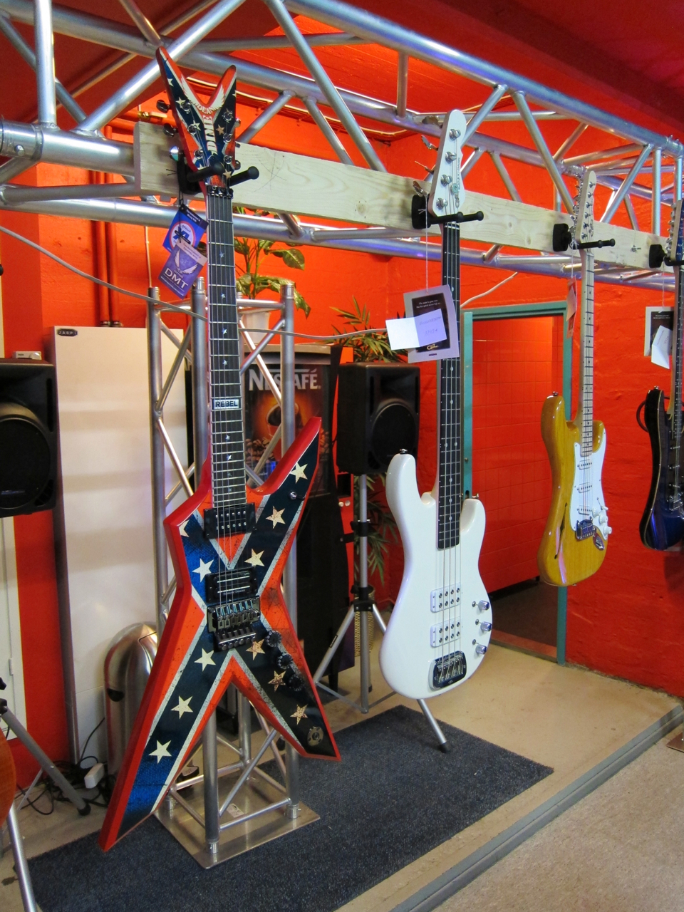 Sound-Shop oli rakentanut osastoonsa myös esiintymislavan. Tässä Dean-käyttäjä Mikko Salovaara.