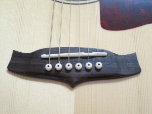 The bridge is Tanglewood’s own design, crafted from a fine piece of rosewood on the test sample. The compensated saddle is made from genuine bone.