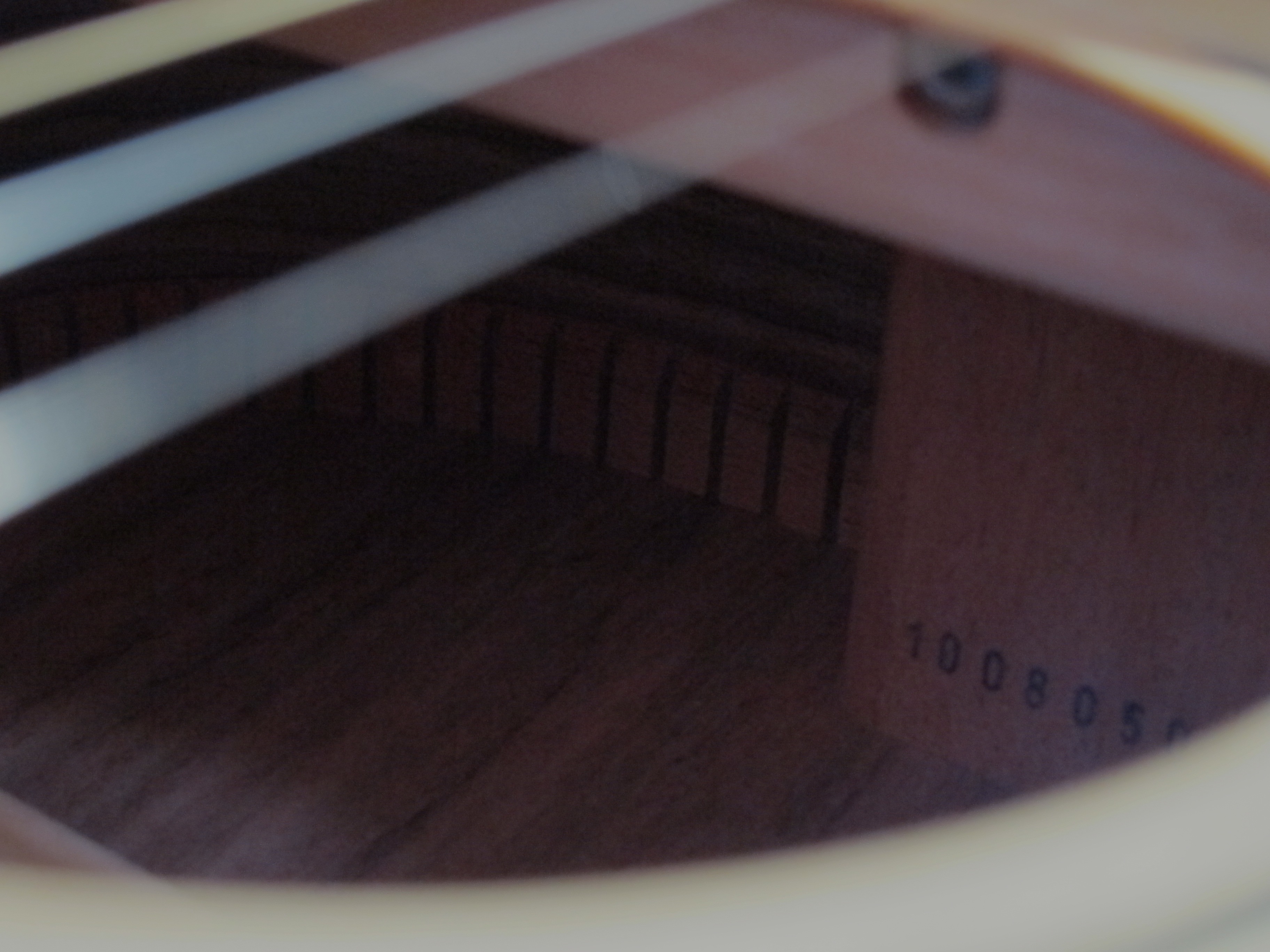 Myös kitaran sisällä työnjälki on ilahduttavan siistiä. Kaulaliitos on perinteinen lohenpyrstöliitos. Soittimen sarjanumero löytyy mahonkiselta kaulablokilta.