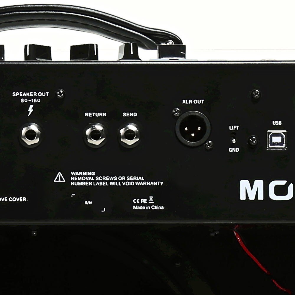 The stylish two-tone, open back cabinet is loaded with a 12-inch Mooer speaker rated at 100 watts (8 Ω).