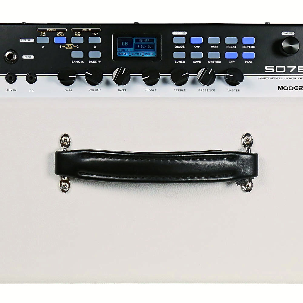 Mustaan osaan on aseteltu vahvistimen näyttö, Value-pyörä, sekä taustavalaistut painonapit, joilla pääsee käsiksi kombon ohjelmamuistiin, sekä etuvahvistimen kaikkiin vahvistin- ja efektiosioihin. Napinpainaluksilla pääsee myös Mooerin Jam Mode -tilaan, jossa voi käyttää vahvistimen sisäistä audioloopperia (150 sekuntia äänitysaikaa) ja SD75:n rumpukonetta/metronomia (40 rumpupatternia; 10 eri metronomivaihtoehtoa). Uutuuskombossa on myös sisäinen kromaattinen viritysmittari.