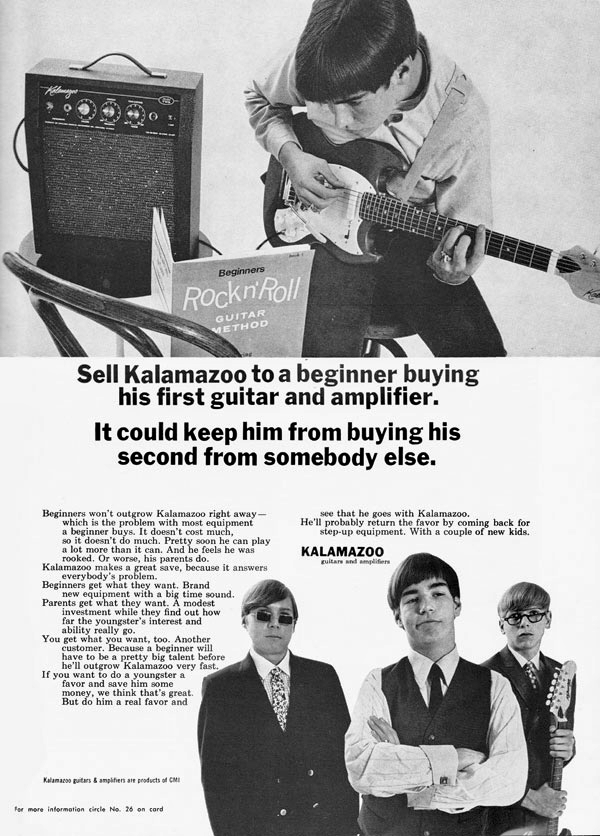 Koska Gibsonilla pelättiin, että uudet halpakitarat voisivat himmentää oman brändin loistoa, herätettiin 1930-luvun Kalamazoo-brändi uudelleen henkiin. Vuodesta 1933 vuoteen 1942 Kalamazoo-soittimet olivat edullisempia versioita Gibsonin akustisista kitaroista, mandoliineista ja banjoista. Näiden soittimien peruslaatu oli samankaltainen kuin Gibson-soittimissa, mutta Kalamazoot olivat kosmeettisesti vaatimattomampia, ja soittimissa ei myöskään ollut säädettävä kaularauta.