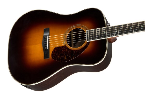 The compensated saddle in the guitar’s rosewood bridge is made from tone-enhancing genuine bone.