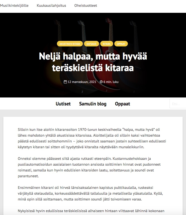 Here’s a demo of three affordable dreadnought-sized acoustic guitars. The demo is based on Anssi Kela’s classic track ”Kaksi sisarta”.